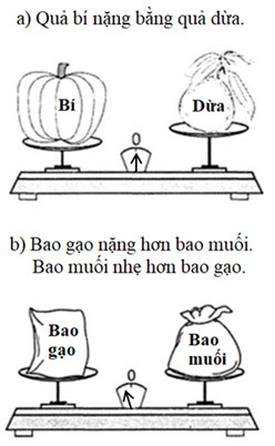 a) Khi hai vật ở hai đĩa cân có cân nặng bằng nhau, kim chỉ cân sẽ đứng thẳng, năm cân bằng ở giữa.