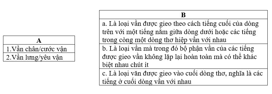 Nối thông tin cột A với thông tin tương ứng ở cột B. Chỉ ra điểm giống và khác nhau giữa thể thơ bốn chữ và thể thơ năm chữ