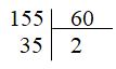 \(1\) giờ $ = 60$ phút nên ta thực hiện tính phép chia \(155:60\). Thương chính là số giờ còn số dư là số phút.