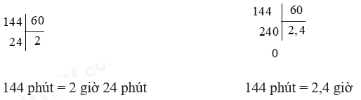 +) 144 phút = 2 giờ 24 phút = 2,4 giờ: