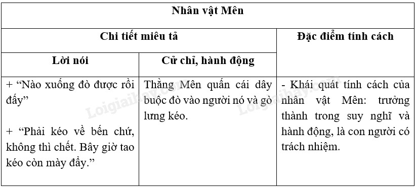 => Từ đó rút ra đặc điểm tính cách của nhân vật Mến.