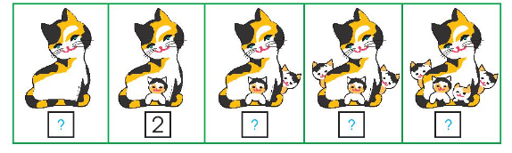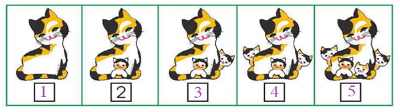 Đếm số con mèo trong mỗi khung rồi điền số thích hợp vào ô trống.