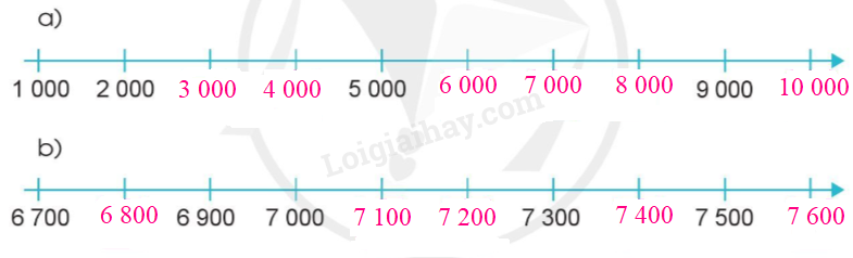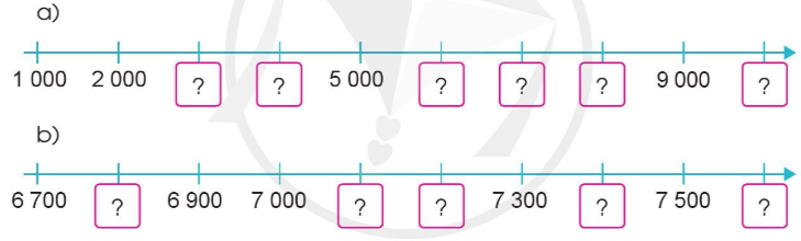 b) Đọc các số sau: 7 000, 5 300, 8 400, 9 000, 10 000.