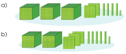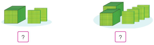 Số? Viết các số sau: sáu nghìn, mười nghìn, một nghìn ba trăm, bốn nghìn năm trăm. Đếm, viết rồi đọc số khối lập phương
