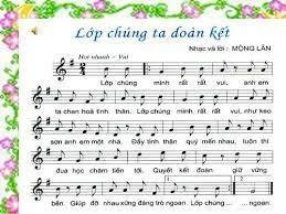 – Em cùng các bạn nghe/hát bài “Lớp chúng ta đoàn kết” (sáng tác: Mộng Lân).