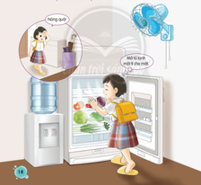 Na đi học về, thấy nóng quá liền mở tủ lạnh ra cho mát. Đây là việc làm chưa đúng, làm tiêu tốn năng lượng của điều hòa, gây lãng phí tiền điện. Na chưa biết bảo quản đồ dùng gia đình.