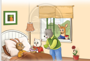 1. Khi thấy Thỏ bị ốm, các bạn liền hỏi nhau và đến thăm Thỏ. Gấu mua khế ngọt, Mèo mua chanh bánh đường mía ngọt, Hươu, Nai mua sữa. Tất cả các bạn đều chúc Thỏ khỏe nhanh để cùng đến lớp.