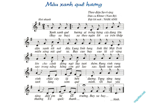 – Nghe/hát bài hát “Màu xanh quê hương” theo điệu Sa-ri-ăng, dân ca Khmer (Nam Bộ), đặt lời mới: Nam Anh. – Hãy chia sẻ cảm xúc của em khi nghe/ hát bài hát đó.
