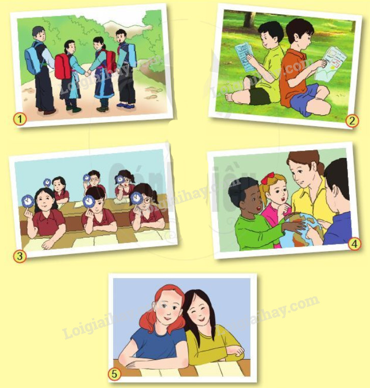 Em quan sát kĩ các bức tranh rồi trả lời câu hỏi chú ý tới cử chỉ, hành động và vẻ mặt của các bạn.