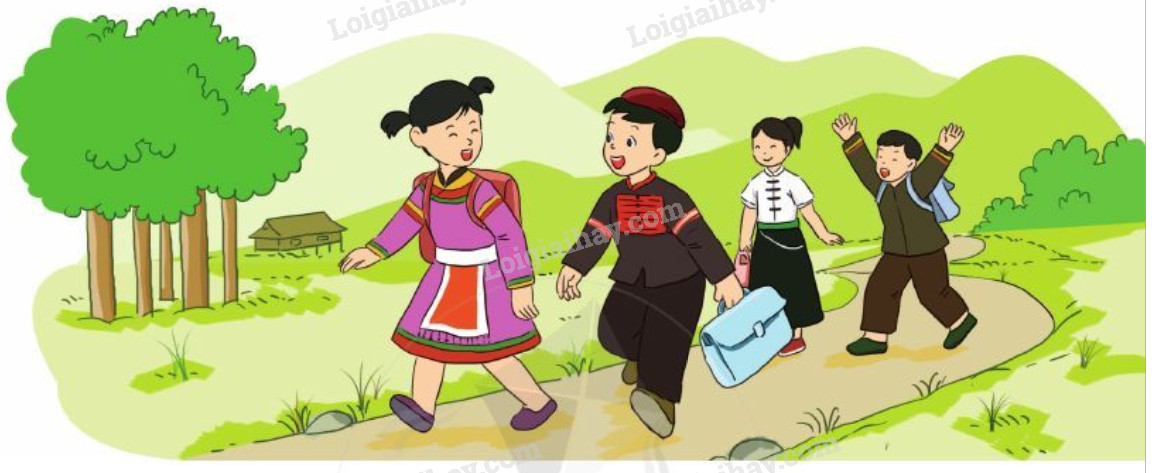 – Tranh 1: Các bạn nhỏ đang tới trường.