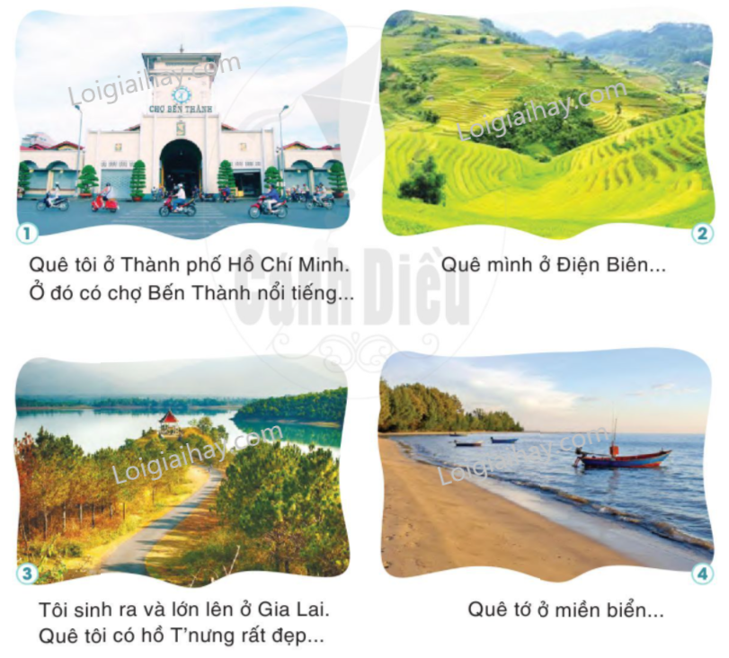 Em dựa vào gợi ý ở những bức tranh để viết về quê hương mình.
