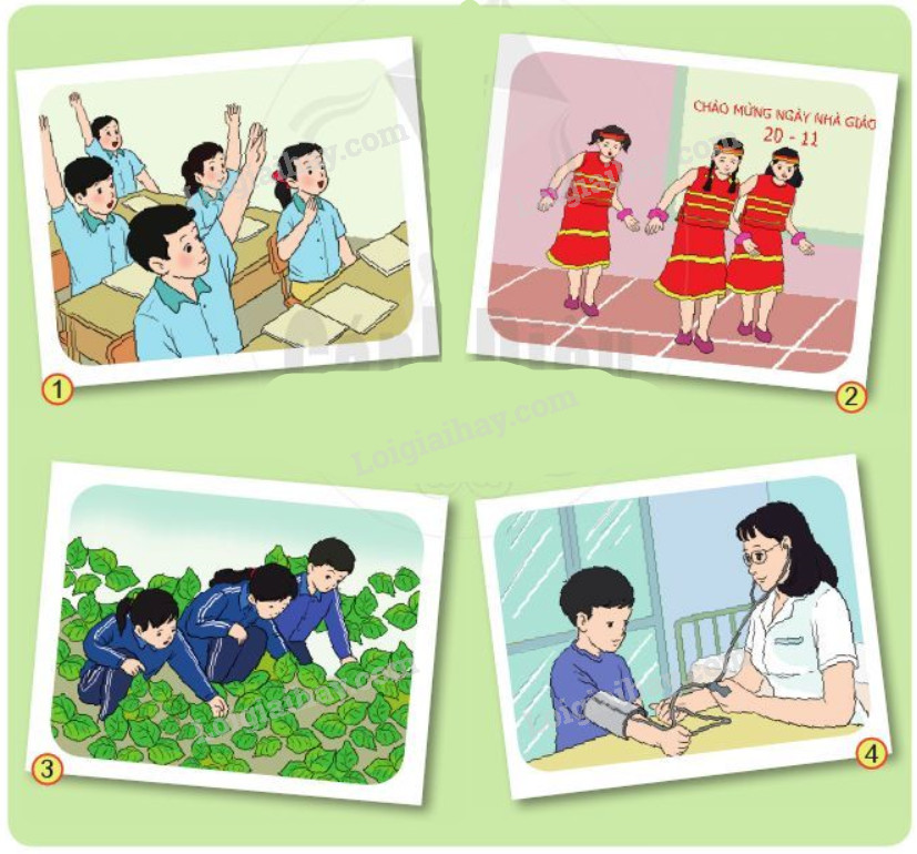 – Tranh 2: Học sinh biểu diễn văn nghệ chào mừng ngày Nhà giáo Việt Nam