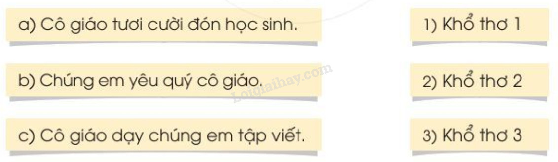 Câu 1: Tìm khổ thơ ứng với mỗi ý: