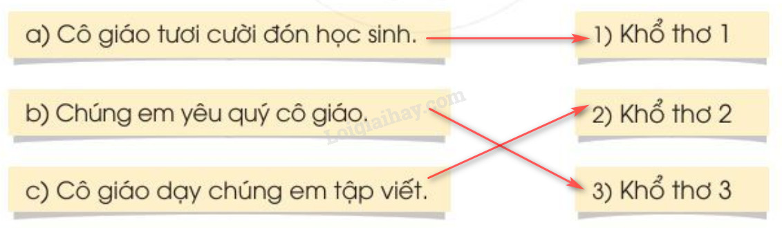 Câu 1: Tìm khổ thơ ứng với mỗi ý:
