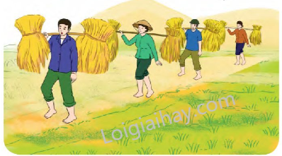 – Ngoài đồng, các bác nông dân đang cấy lúa.