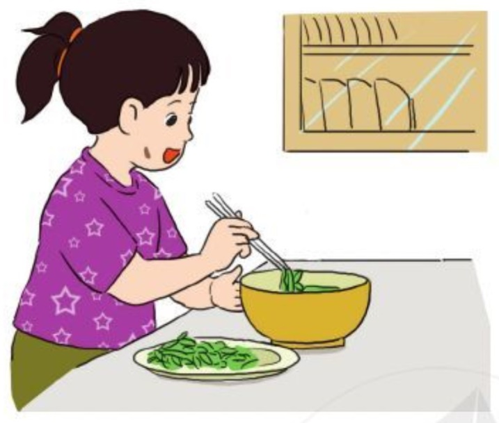 Mâm cơm được bạn nhỏ chuẩn bị rất đầy đủ. (Chẳng còn thiếu gì nữa/ Cái gì cũng có rồi)