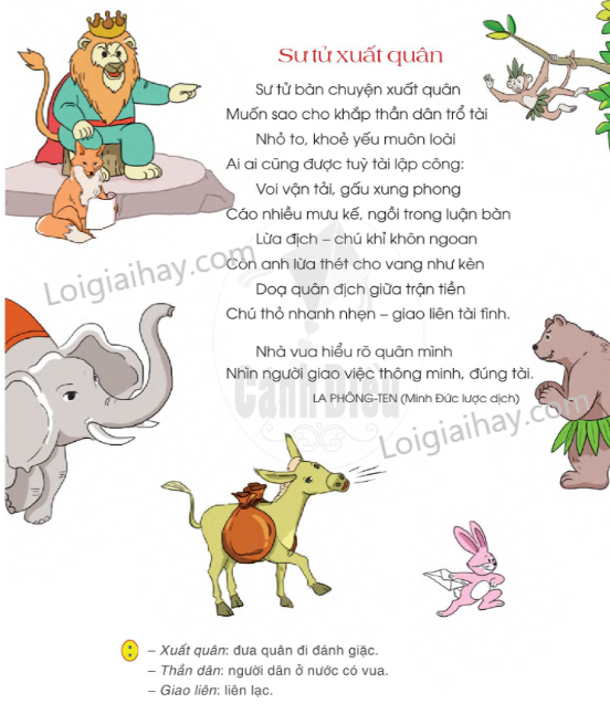 Giải Bài 25: Chia sẻ và đọc: Sư tử xuất quân SGK Tiếng Việt 2 tập 2 Cánh diều với đầy đủ lời giải tất cả các câu hỏi và bài tập phần đọc, viết, luyện từ và câu, kể chuyện,….