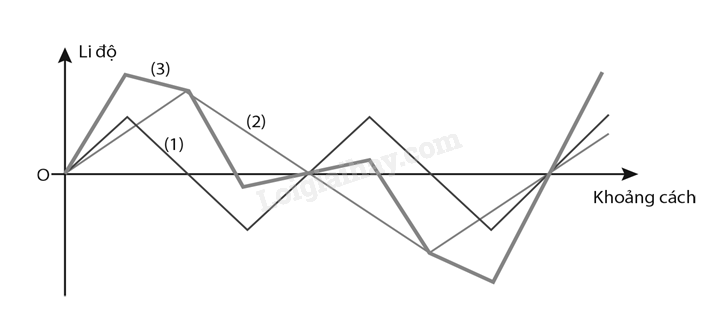 Xác định bước sóng và biên độ của các sóng a và b được mô tả trong đồ thị li độ – khoảng cách trên Hình 2.2.