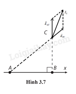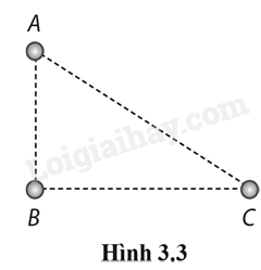3.12. Ba điện tích được đặt tại ba điểm cố định trong mặt phẳng tạo thành một tam giác vuông ABC (Hình 3.3). Chiều dài hai cạnh góc vuông là AB = 4 m và BC = 5 m. Điện tích tại A là qA = 5,0 μC, tại B là là qB = –5,0 μC, tại C là qC = 4,0 μC. Tìm lực điện tổng hợp tác dụng lên mỗi điện tích.