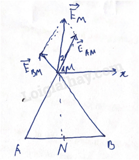 Điểm C luôn cân bằng vì \({\vec F_{AC}} = – {\vec F_{BC}};{F_{AC}} = {F_{BC}} = k\frac{{qQ}}{{{{\left( {0,5r} \right)}^2}}}\)
