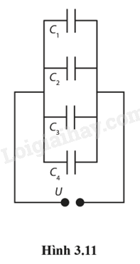 3.41. Bộ tụ điện ghép song song (Hình 3.11) gồm: C1 = 3,00 μF; C2 = 6,00 μF; C3 = 12,0 μF; C4 = 24,0 μF. Hiệu điện thế U = 18,0 V.
