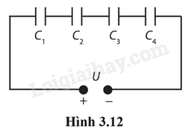 3.42. Bốn tụ điện được mắc nối tiếp (Hình 3.12). C1 = 3,0 μF; C2 = 6,0 μF; C3 = 12 μF; C4 = 24 μF; U = 18 V.