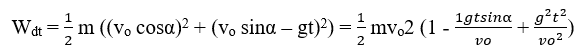 Wdt = 1/2 m ((vo cosα)2 + (vo sinα – gt)2)