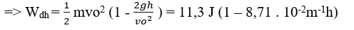 Công của lực cản: AC = -Fch = – mgh = -6,42 mJ