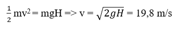 Sử dụng công thức: W = 1/2 mv2 = mgH