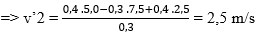 0,4 . 5,0 – 0,3 . 7,5 = -0,4 . 2,5 + 0,3 . v’2