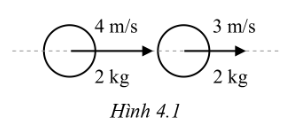 Hình 4.1 cho thấy hai quả cầu giống hệt nhau sắp xảy ra va chạm. Các quả cầu dính vào nhau sau khi va chạm. Xác định tốc độ của các quả cầu và hướng dịch chuyển của chúng sau va chạm.