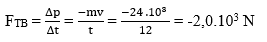 Δp = 0 – mv = -1,2 . 103 . 20 = -24 . 103 kg.m/s