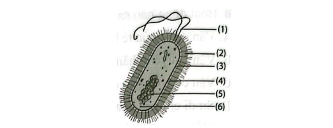 c) (1) roi; (2) vỏ nhầy; (3) thành tế bào; (4) màng sinh chất; (5) DNA; (6) ribosome.