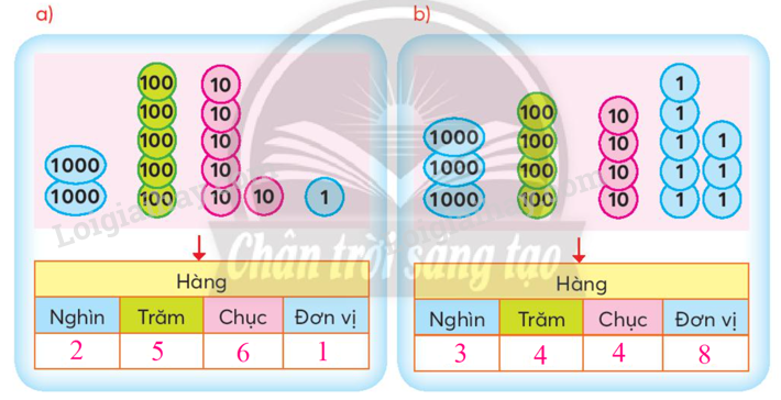 Quan sát hình ảnh các thẻ số để tìm số nghìn, số trăm, số chục, số đơn vị.
