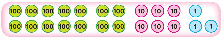 Dựa vào bảng trên em lấy các thẻ 1 000, 100, 10, 1 phù hợp cho mỗi trường hợp.