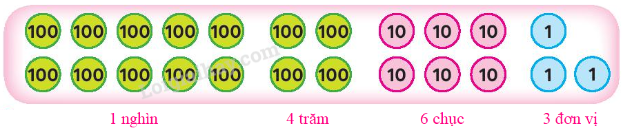 Số đã cho gồm 1 nghìn 4 trăm 6 chục 3 đơn vị.