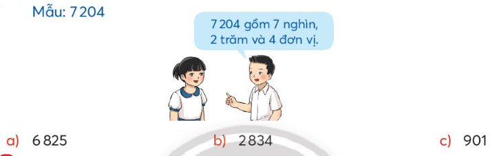 Xác định số nghìn, số trăm, số chục, số đơn vị của mỗi số rồi nói theo mẫu.