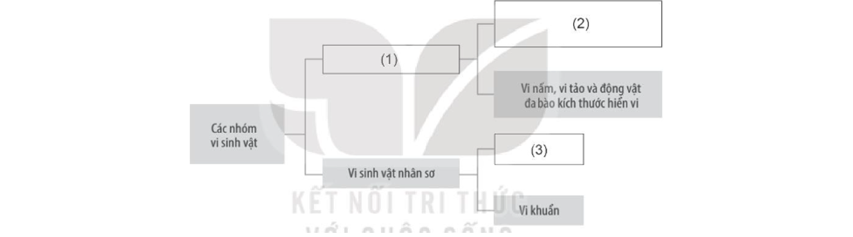 Điền các cụm từ thích hợp thay cho các số trong sơ đồ phân chia các nhóm vi sinh vật dưới đây: