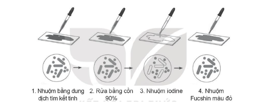 Để xác định vi khuẩn gây bệnh thuộc nhóm Gram âm hay Gram dương, làm cơ sở cho việc sử dụng thuốc điều trị phù hợp, nâng cao hiệu quả chữa trị các bệnh nhiễm khuẩn, người ta sử dụng biện pháp nào sau đây?