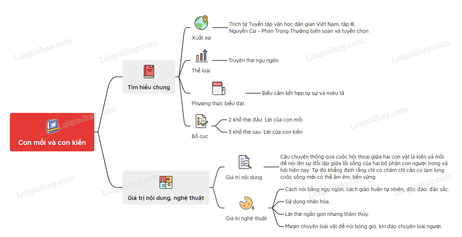 Sơ đồ tư duy về văn bản Con mối và con kiến: