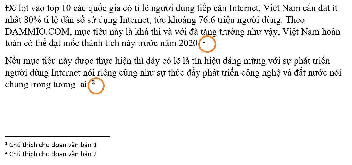 – Cước chú thường được là một con số nằm phía trên sau đoạn văn bản mà nó muốn chú thích.