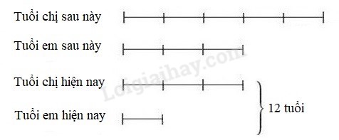 Ví dụ 4: Hiện nay tổng số tuổi của hai chị em bằng 12 tuổi. Đến khi tuổi em bằng tuổi chị hiện nay thì tuổi chị bằng $\frac{5}{3}$ tuổi em. Tìm tuổi của mỗi người hiện nay.
