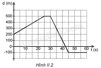 b) Từ 30 s đến 45 s: xe đi về hướng nam vì đồ thị có độ dốc âm, ngược chiều dương đã chọn ban đầu (ngược chiều chuyển động ban đầu).