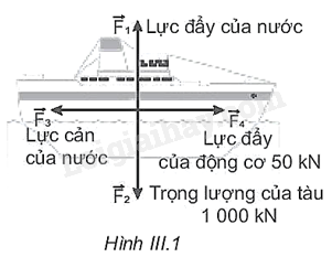 c) Độ lớn lực cản của nước bằng độ lớn lực đẩy của động cơ: F3 = 50 kN.