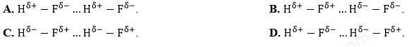 Câu 46: Sơ đồ nào sau đây thể hiện đúng liên kết giữa 2 phân tử hydrogen fluoride (HF)?