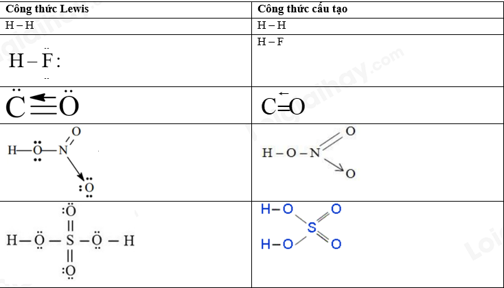 Câu 9: Viết công thức Lewis và công thức cấu tạo của các phân tử sau: H2, HF, CO, HNO3, H2SO4.