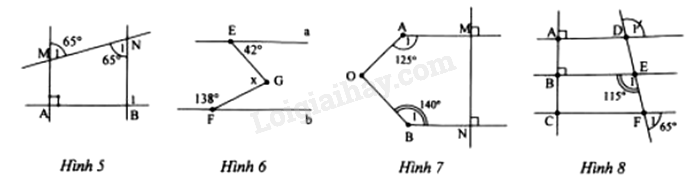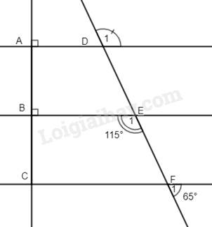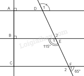 a) Ta có \(\widehat {{F_1}} + \widehat {{F_2}} = {180^0}\) (hai góc kề bù) \( \Rightarrow \widehat {{F_2}} = {180^0} – {65^0} = {115^0}\).