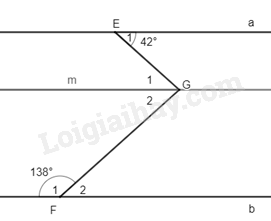 Vì m // b nên \(\widehat {{G_2}} = \widehat {{F_2}} = {42^0}\) (hai góc so le trong)