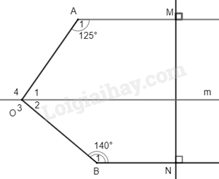 \(\widehat {{A_1}} = \widehat {{O_4}} = {125^0};\widehat {{B_1}} = \widehat {{O_2}}\) (các cặp góc so le trong)