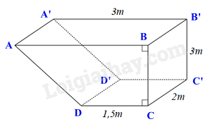 \(V = {S_{ABCD}}.CC’ = 6,75.2 = 13,5\left( {{m^3}} \right)\)